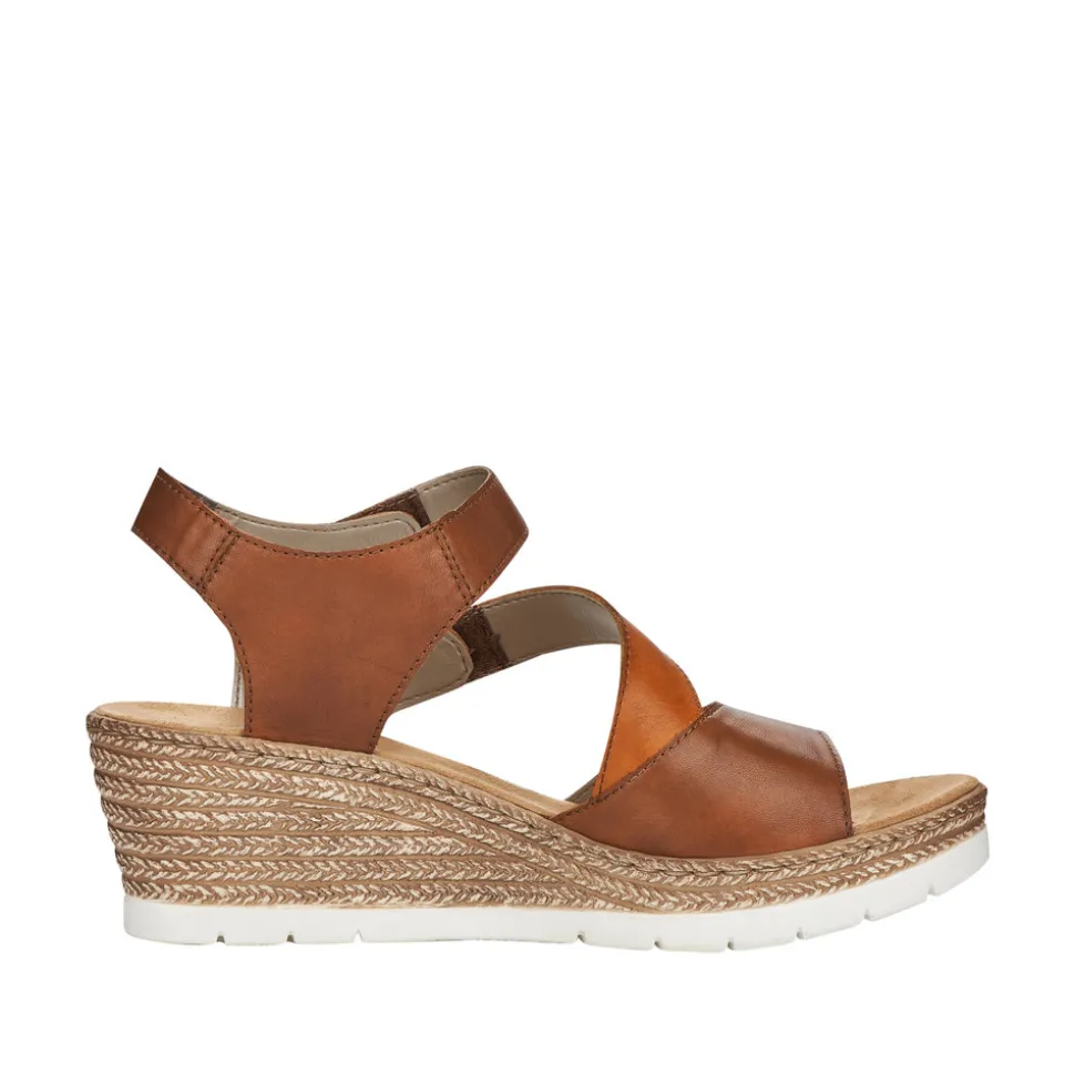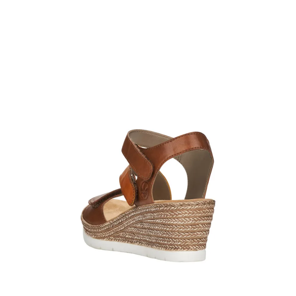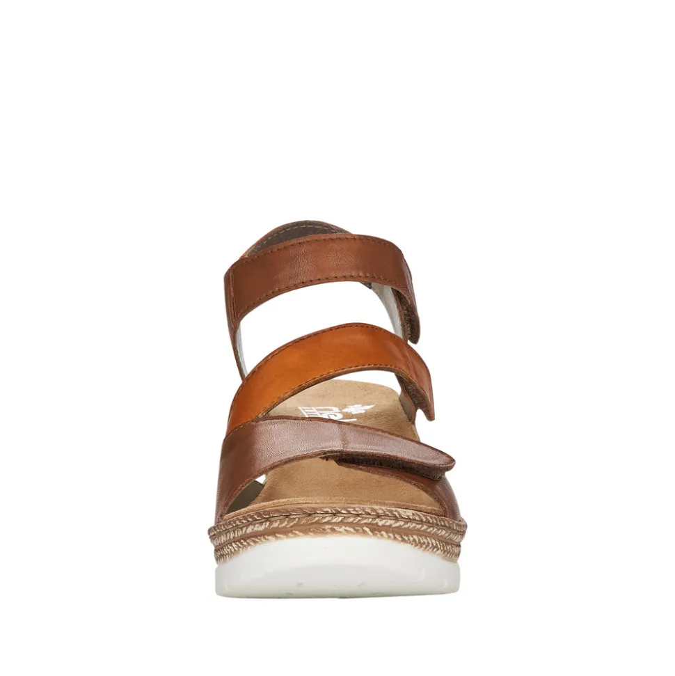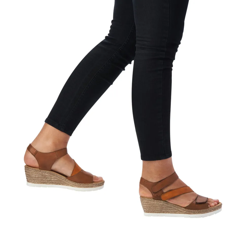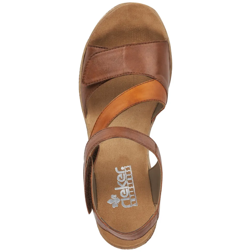 61922-24 Rieker Sandal i Brun til Dame. Dejlig let og blød sandal, i en super flot brun farve. Modellen har et super flot design, med flotte detaljer i overdelen. Modellen har en hælhøjde på ca. 5 cm. Modellen har 3 velcro lukninger i overdelen.