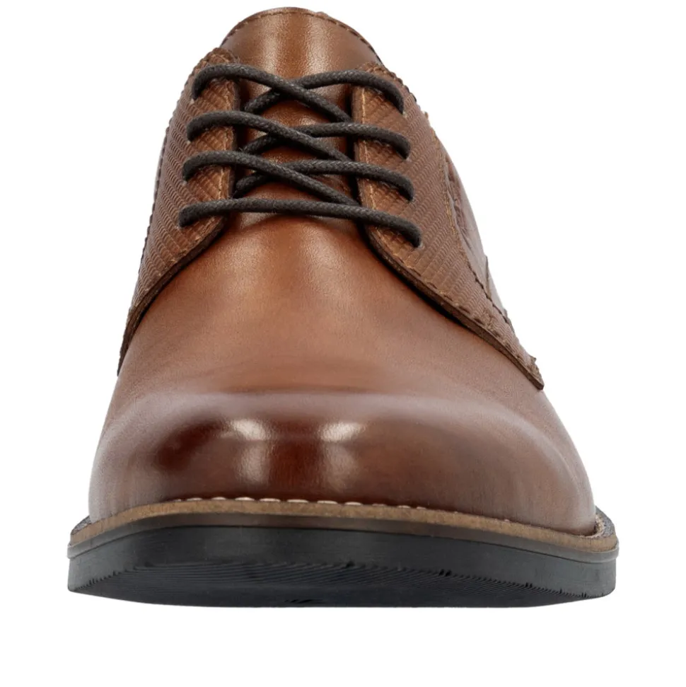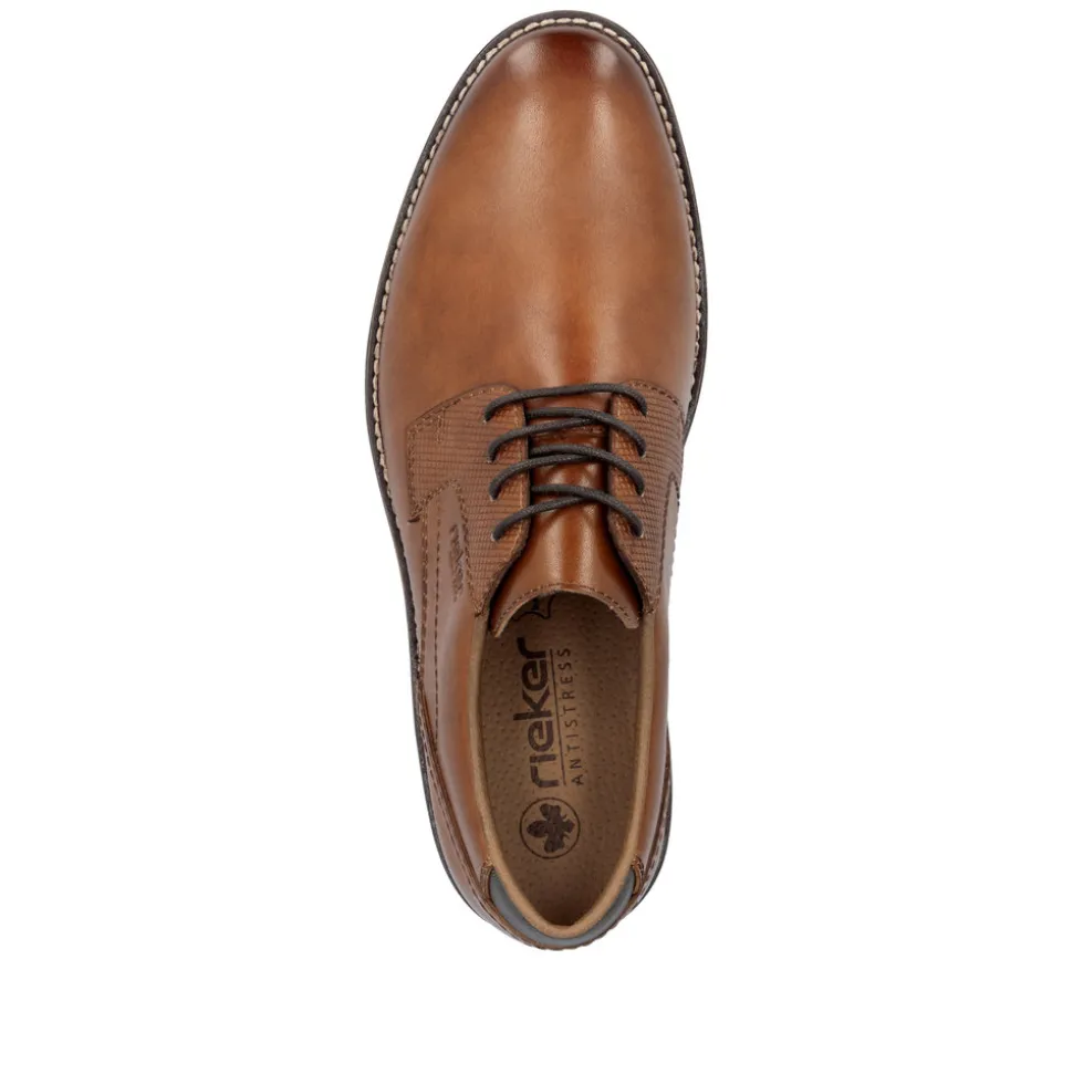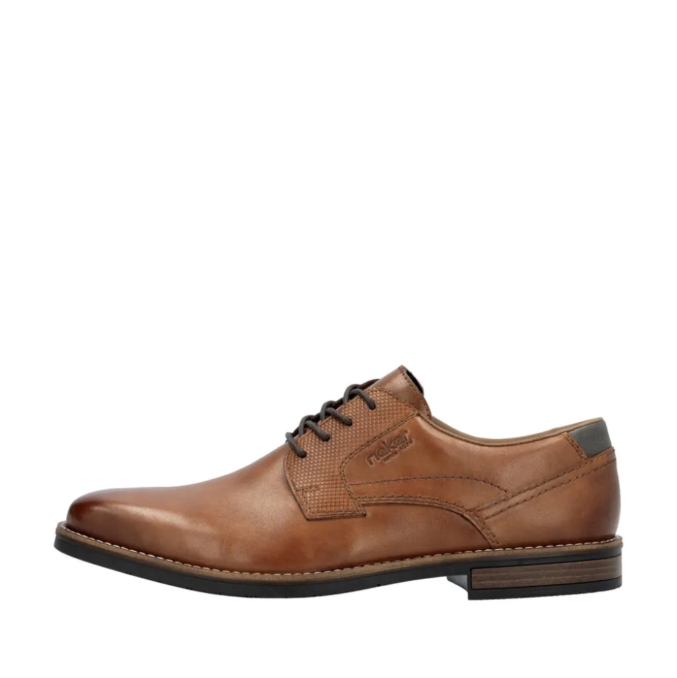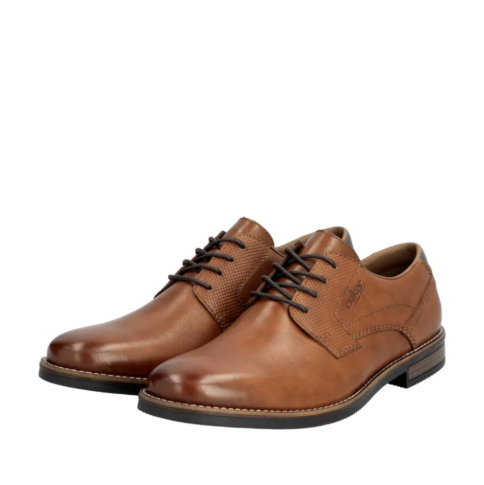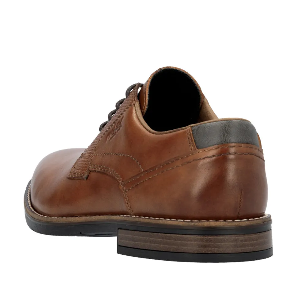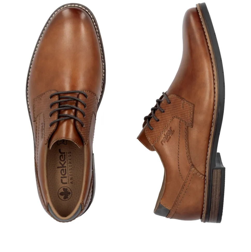 Rieker sko til herre i brun. Med disse hverdagsvenlige karamelfarvede Rieker snøresko til mænd i glat læder, er du på farten med maksimal komfort og ultimativ stil. Skoene sikrer optimal støtte og en perfekt pasform takket være snørelukningen. Den grebssikre og stødabsorberende TR- sål gør hvert skridt sikkert, og indersålen i ægte skind er ekstra blød. Modellen er skåret i komfortvidde G 1/2 som sikrer dig en normal pasform. Ren luksus til dine fødder!