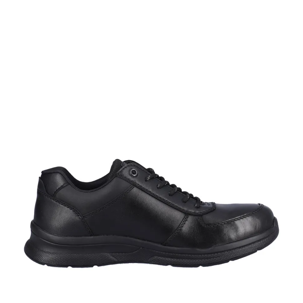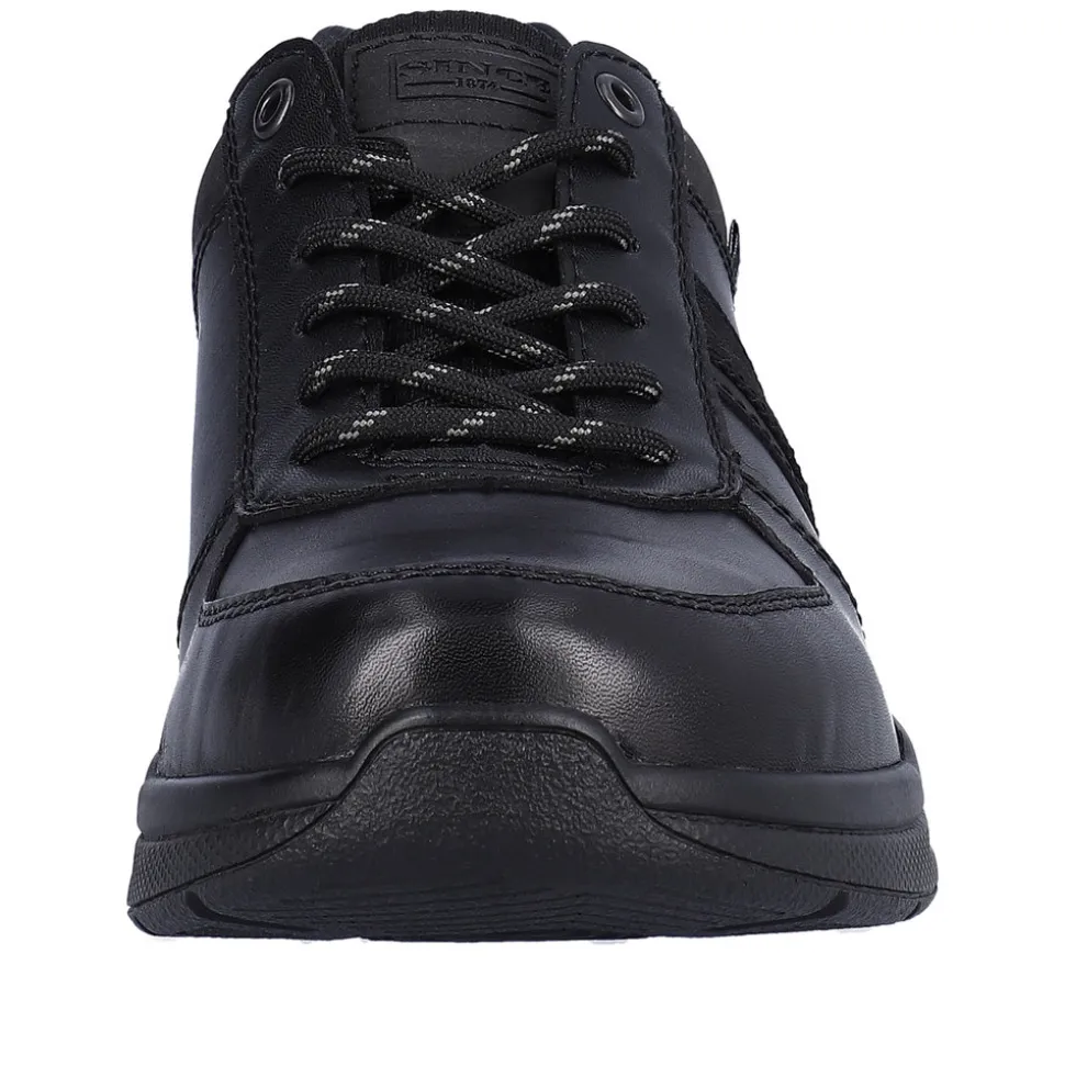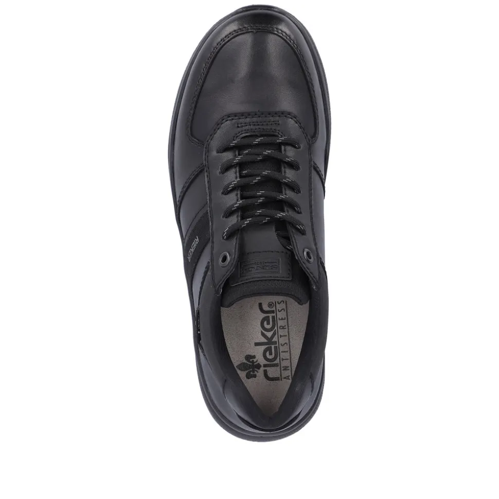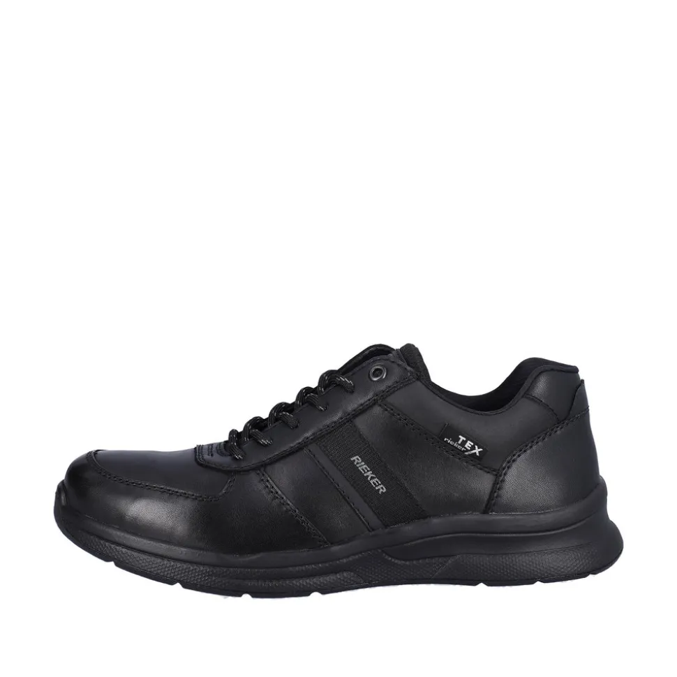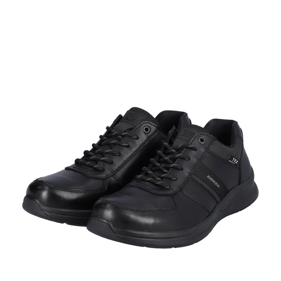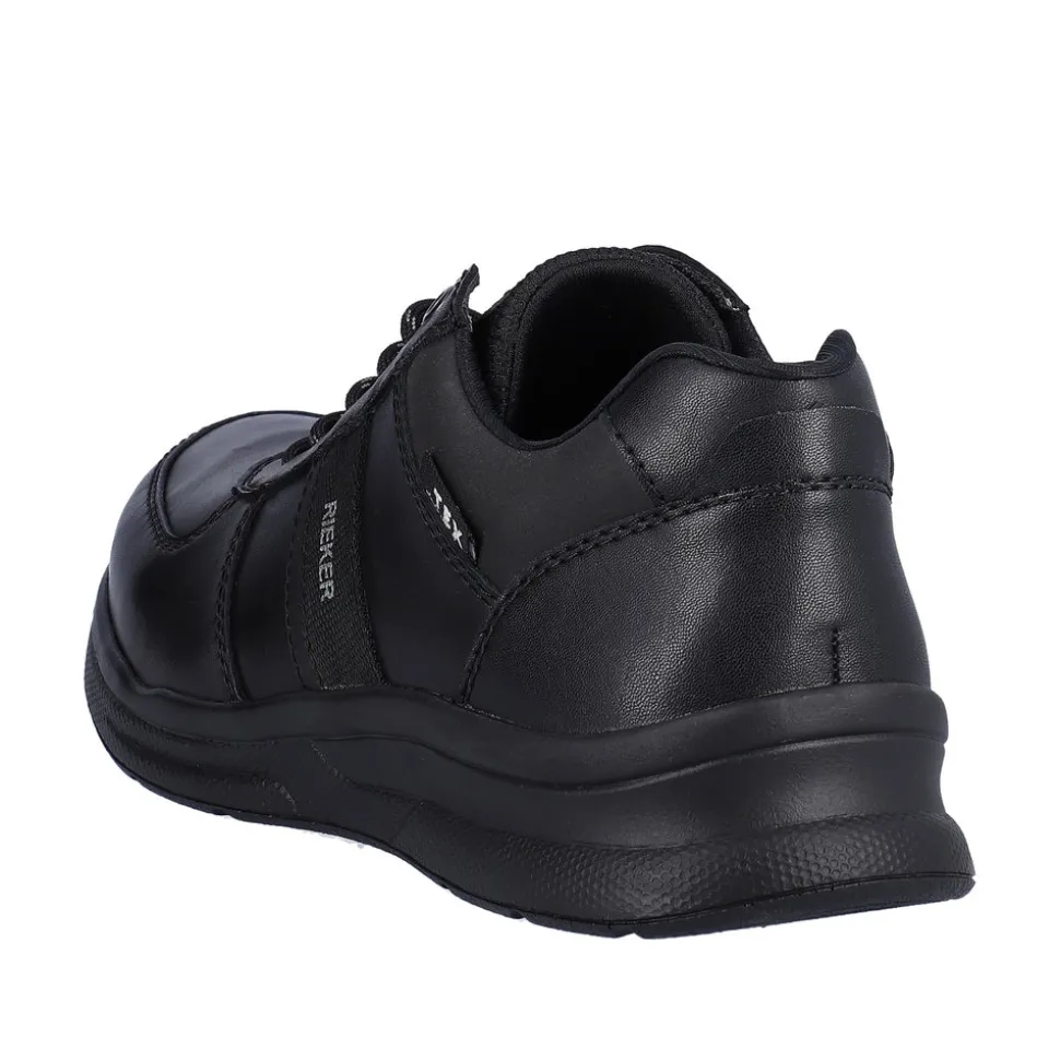 Rieker sko i sort til herre. Utrolig lækker sko med en overdel i læder samt justerbar snørebånd på en stødabsorberende sål med ekstra vidde for mere komfort til dine fødder. En meget let og fleksibel sko med RiekerTex som gør skoen vandafvisende.