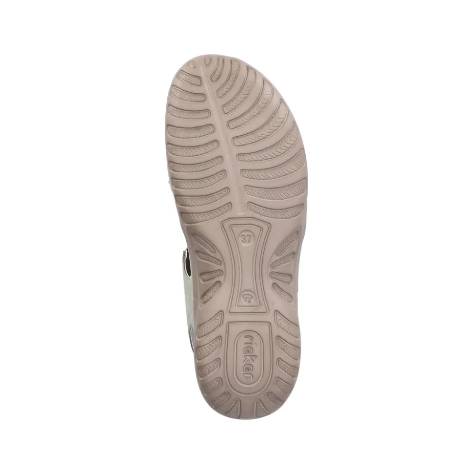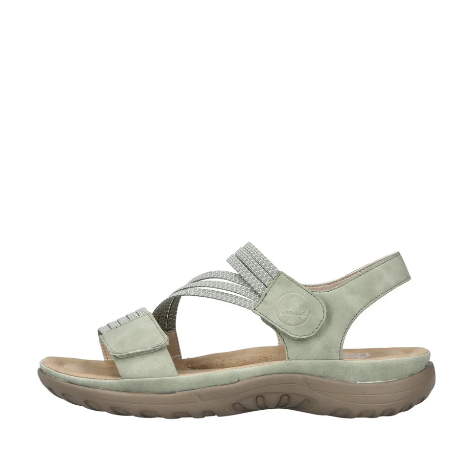 Rieker sandal i grøn til dame. Klar til sommeren? Disse mintgrønne Rieker sandaler til damer er en behagelig følgesvend. Du er sikret perfekt pasform og god støtte med remme, 2 velcrolukninger og en hæl rem. Den fleksible og ultralette stødabsorberende sål giver optimal gangkomfort. Med bløde såler er du sikret ekstra komfort. Så kom af sted!