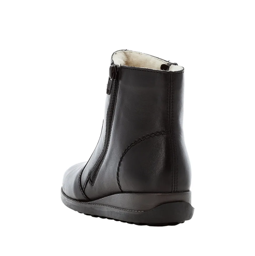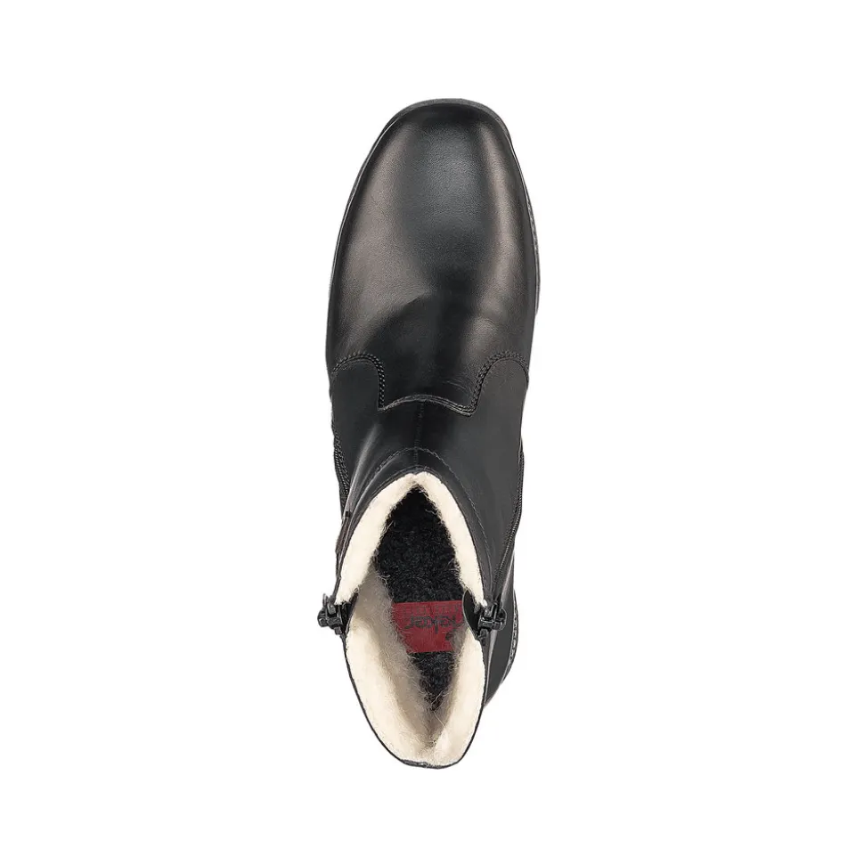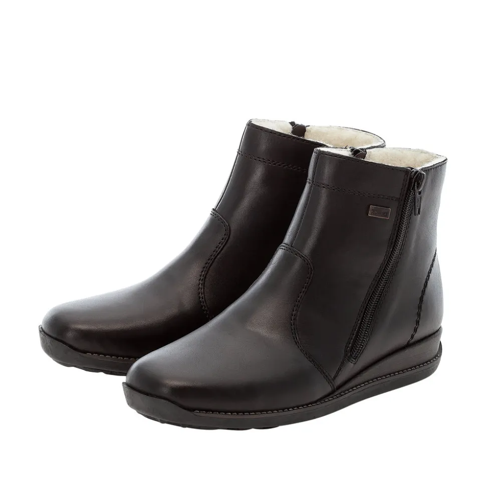 Rieker vinterstøvle i sort til dame. Oplev den perfekte kombination af lethed og varme med denne støvle fra Rieker. Udstyret med to lynlåse for nem påtagning og et blødt uldfoer, der holder dine fødder varme selv på de koldeste dage. Støvlens RiekerTex-teknologi sikrer, at den er kraftigt vandafvisende, så dine fødder forbliver tørre i alt slags vejr. Den faste gummisål giver et godt greb og stabilitet på alle underlag. Ideel til dig, der ønsker både komfort og funktionalitet i en moderne støvle.