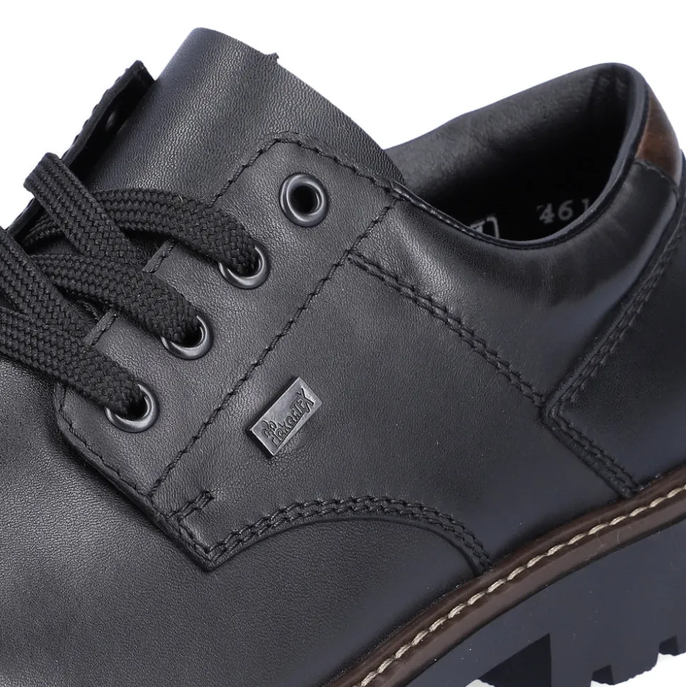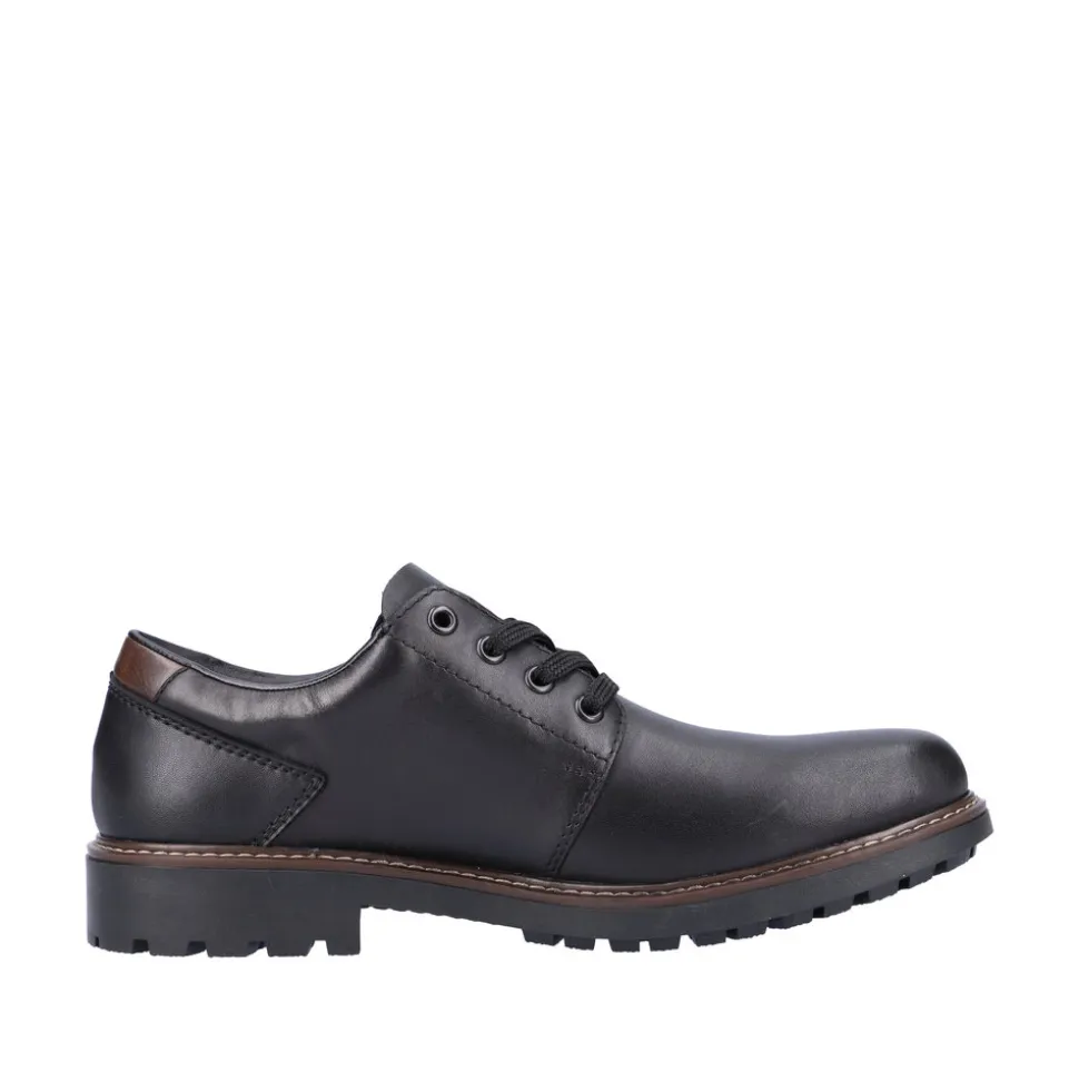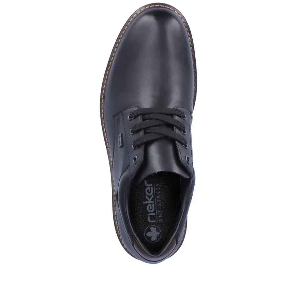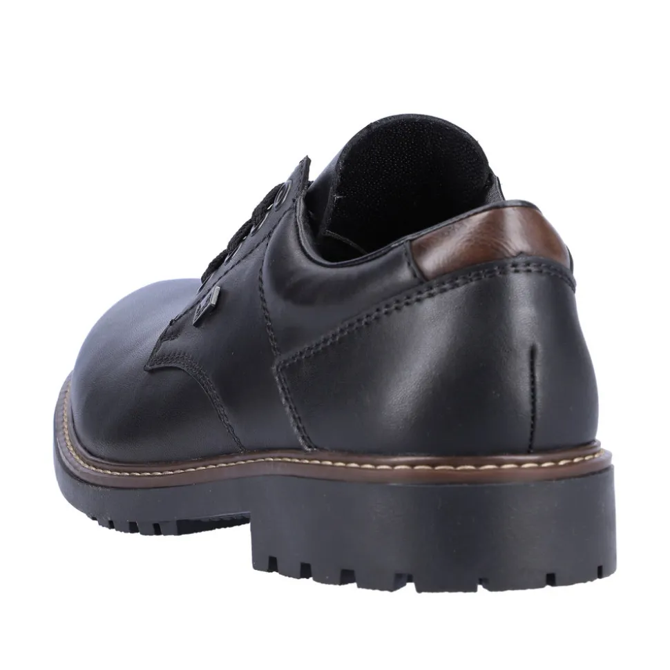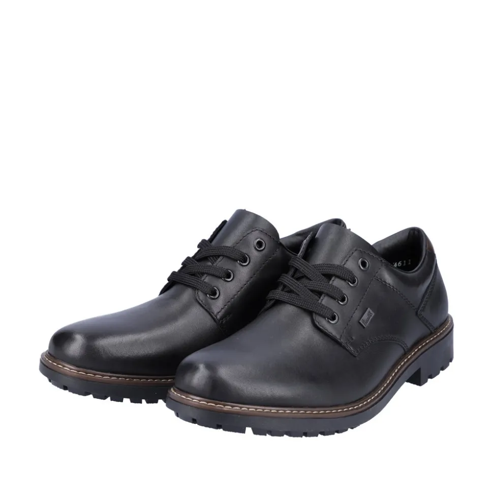 Rieker sko til herre i sort. Opgrader din stil med disse elegante herresko fra Rieker i en klassisk sort nuance. Disse sko kombinerer fine skinddetaljer med en sofistikeret finish, der løfter dit look til nye højder. Med en enestående pasform og den innovative RiekerTEX teknologi, der sikrer effektiv vandafvisning, er disse sko både praktiske og stilfulde. Den ekstra rummelighed i fronten giver øget komfort, mens avanceret stødabsorbering og imponerende fleksibilitet sørger for, at hvert skridt føles behageligt. Disse herresko er den perfekte kombination af komfort, funktionalitet og stil – et must-have til enhver garderobe!