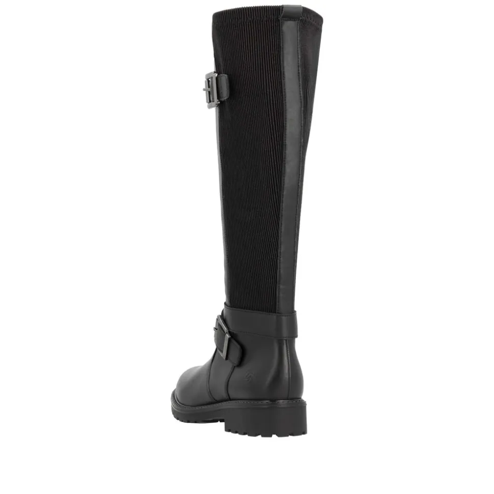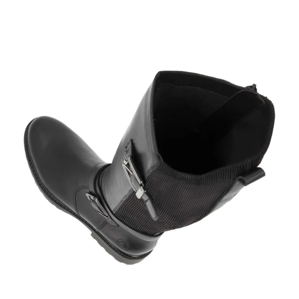 Remonte lange støvle i sort til dame. Pas på, denne biker inspireret støvle med en overdel i glad læder kan hurtigt …
