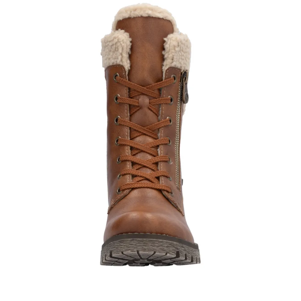Rieker vinterstøvle til dame i brun. Disse brune Rieker snørestøvler til damer er ikke kun stilfulde, men også utrolig funktionelle. Designet med materialer, der effektivt beskytter mod fugt, er de perfekte til alle vejrforhold. Støvlen er både fleksibel og robust, samtidig med at den tilbyder en fremragende pasform. På trods af lynlåsen kan støvlen nemt justeres med snørebåndene, hvilket gør den praktisk og alsidig. Det moderne design fuldendes af den varme krave med ægte pels, der tilføjer både stil og komfort. Sålens blokhæle giver et solidt greb, så du altid står fast, mens RiekerTEX-teknologien sammen med den fugtregulerende og varme Merinould sikrer en behagelig oplevelse under alle forhold. Oplev ægte bærekomfort og luksus med disse fantastiske støvler!