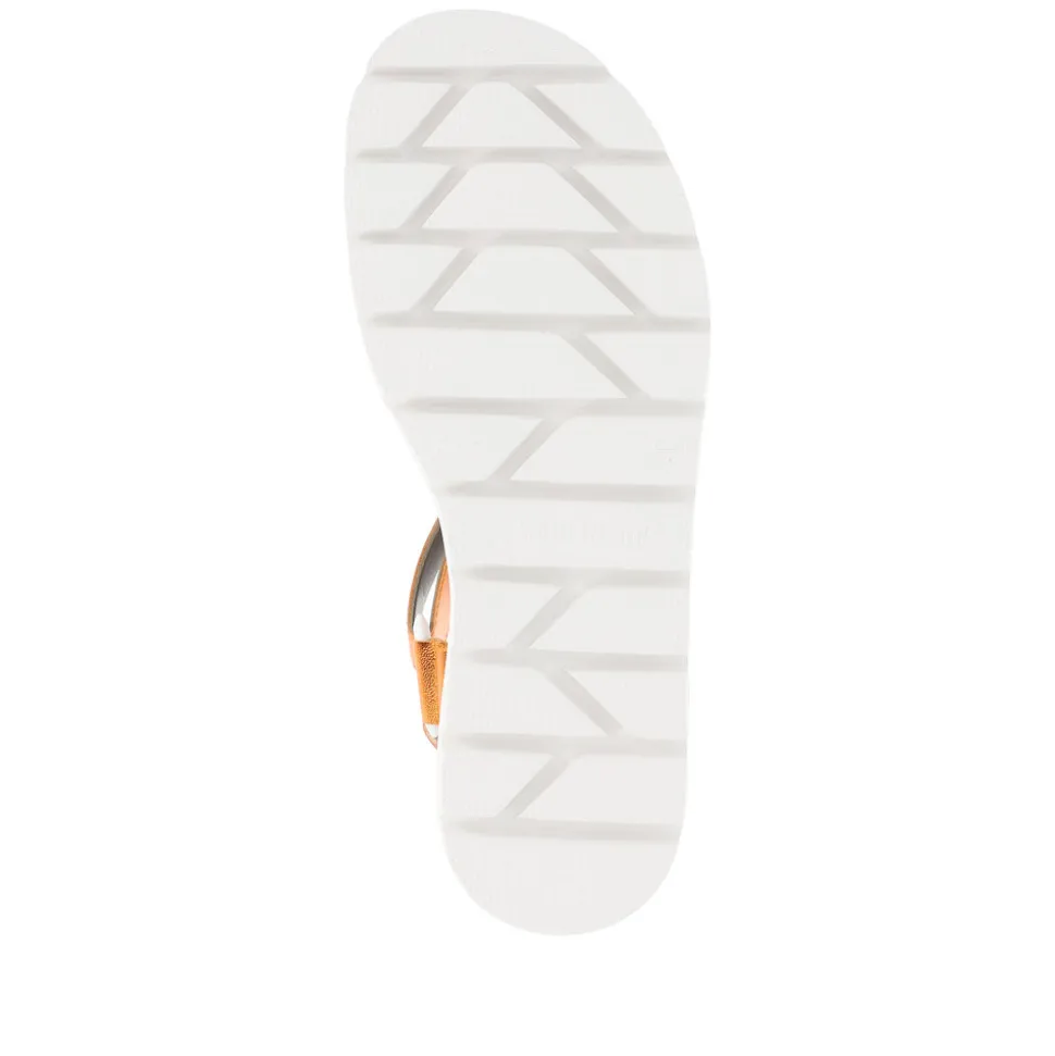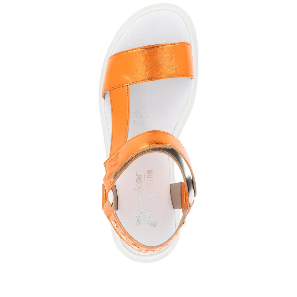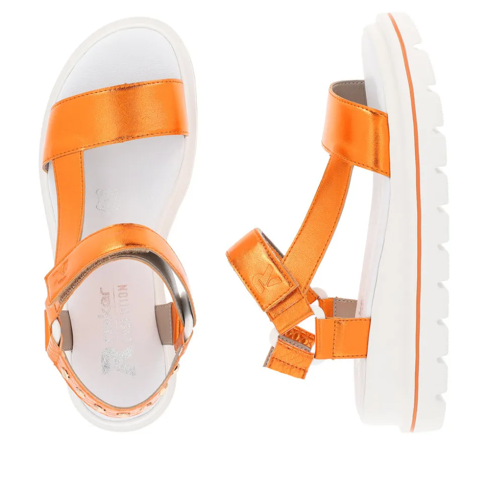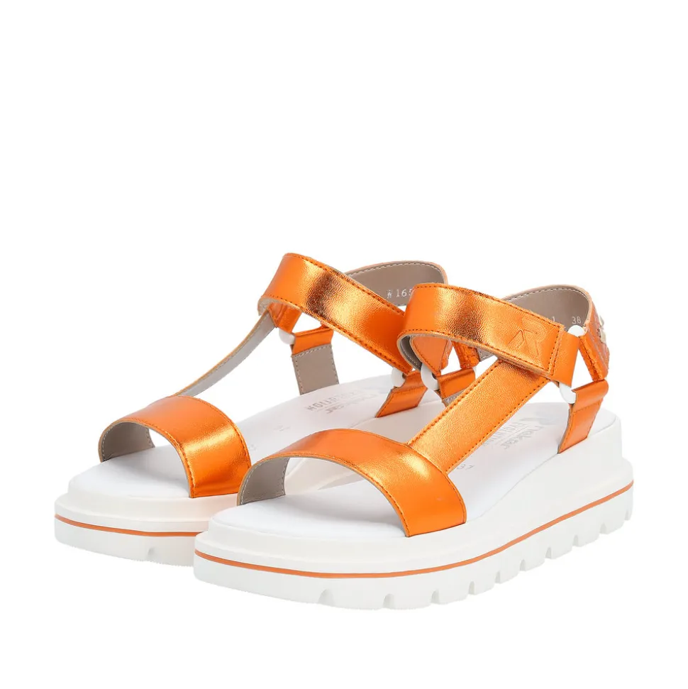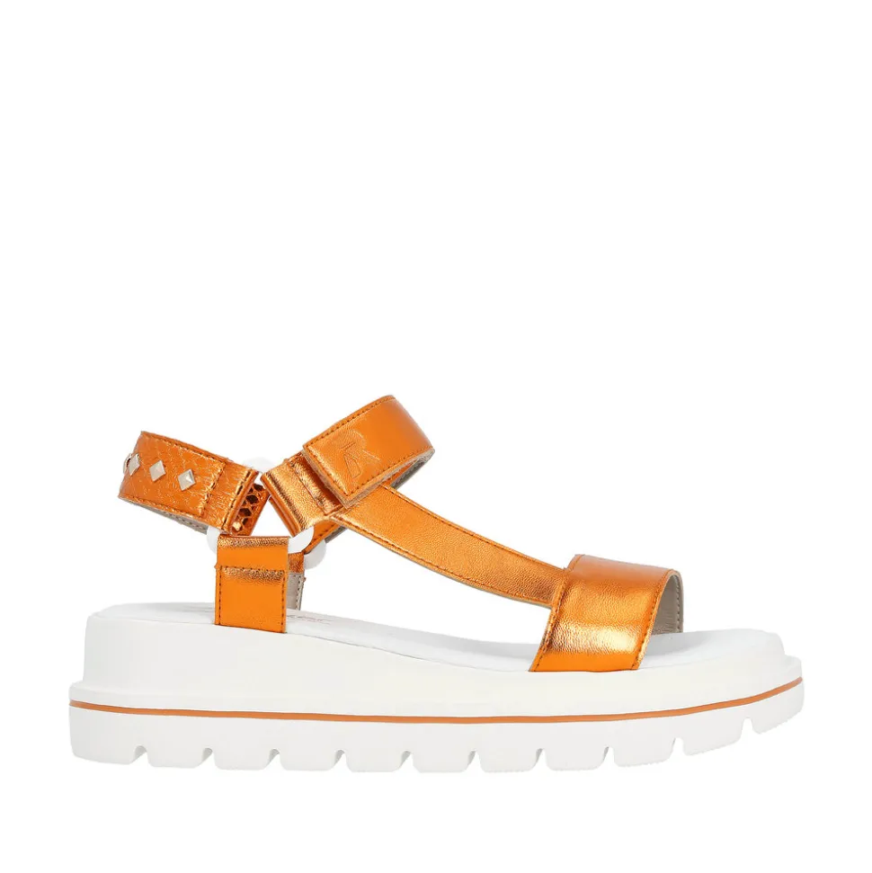 Rieker Revolution sandal til dame i orange. Moderne orange sandal med en sofistikeret hvid sål, der giver sandalen et e…