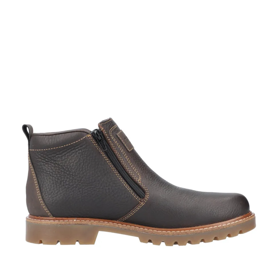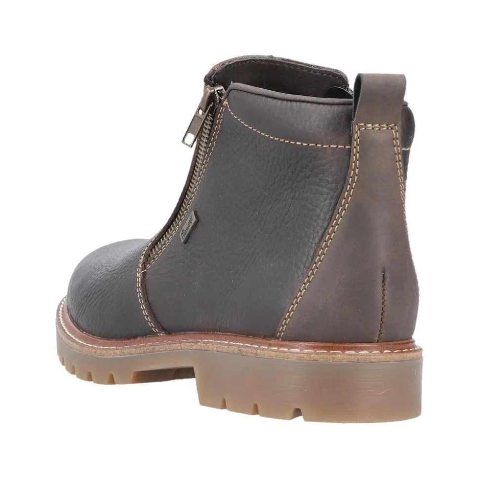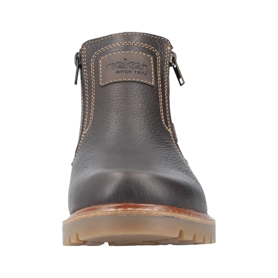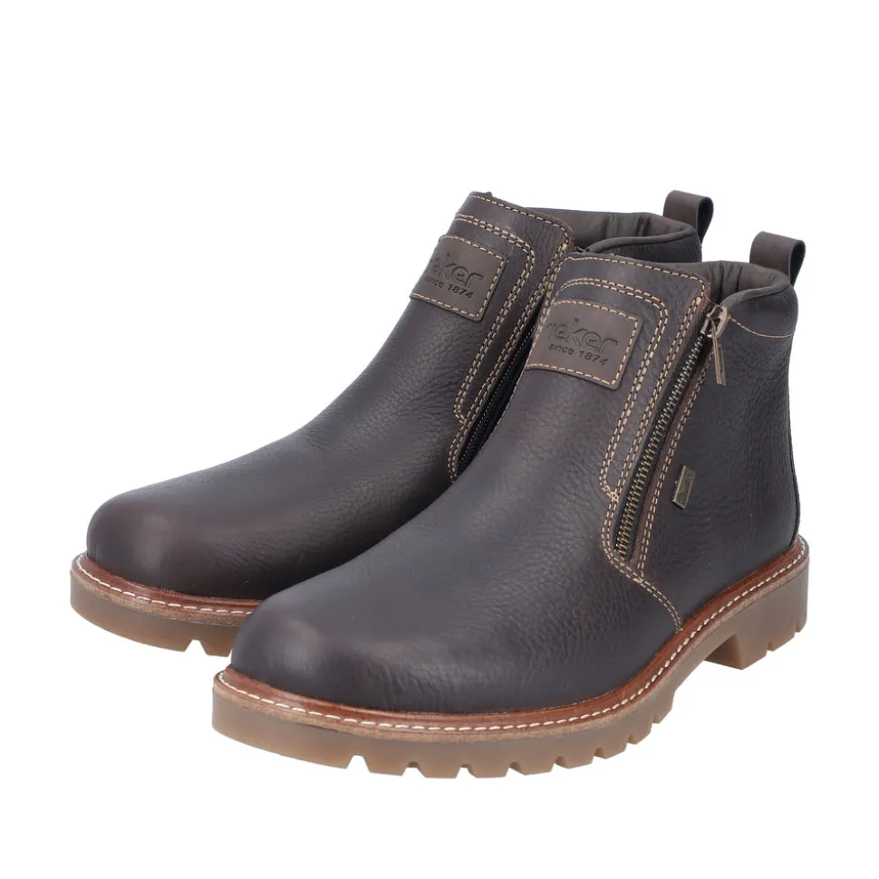 Rieker vinterstøvle i brun til herre. Opgrader din garderobe med denne smarte Rieker-støvle i en elegant brun nuance og smukke detaljer. Med lynlåse på begge sider bliver det både praktisk og nemt at tage støvlerne af og på. Takket være den indbyggede RiekerTex-teknologi er støvlerne kraftigt vandafvisende, hvilket sikrer dine fødder mod regn og fugtige forhold. Det bløde og varme uldfoer gør dem perfekte til kolde dage, mens den lækre skindoverflade tilføjer et eksklusivt touch. Med Rieker fibergrip under den stødabsorberende sål står du sikkert fast, selv på glatte overflader. Den ideelle støvle til vinterens udfordringer!