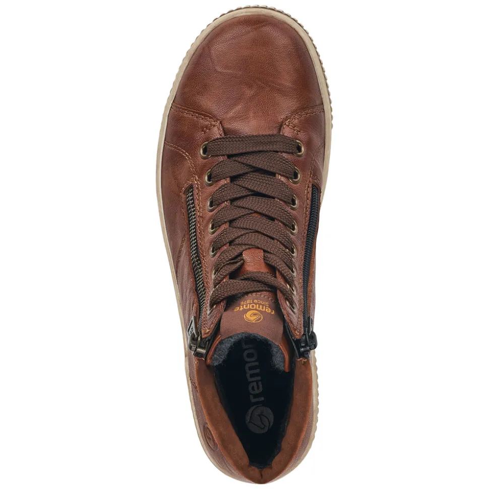 Remonte støvle til dame i brun. Oplev den perfekte kombination af stil, komfort og funktionalitet med denne smukke brune støvle med komfortvidde G. Den lette og fleksible konstruktion giver dig fri bevægelighed, mens de elegante detaljer tilfører et sofistikeret touch til dit look. De to praktiske lynlåse gør det nemt og hurtigt at komme i og af støvlen – helt uden besvær. Takket være RemonteTex-teknologien er støvlen kraftigt vandafvisende, så du kan holde fødderne tørre, selv når vejret er imod dig. Overdelen i blødt skind former sig smukt efter foden, og ydersålens stødabsorbering og skridsikre mønster sørger for både komfort og sikkerhed på glatte overflader. Den lette foring holder dine fødder varme på de kølige dage, og de bløde udtagelige indlægssåler giver ekstra støtte og komfort dagen lang.