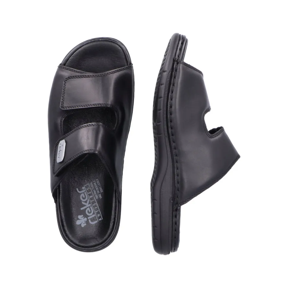 Rieker slenters til herre i sort. Disse Rieker herresandaler i blank sort glat læder får dine fødder til at føle som…