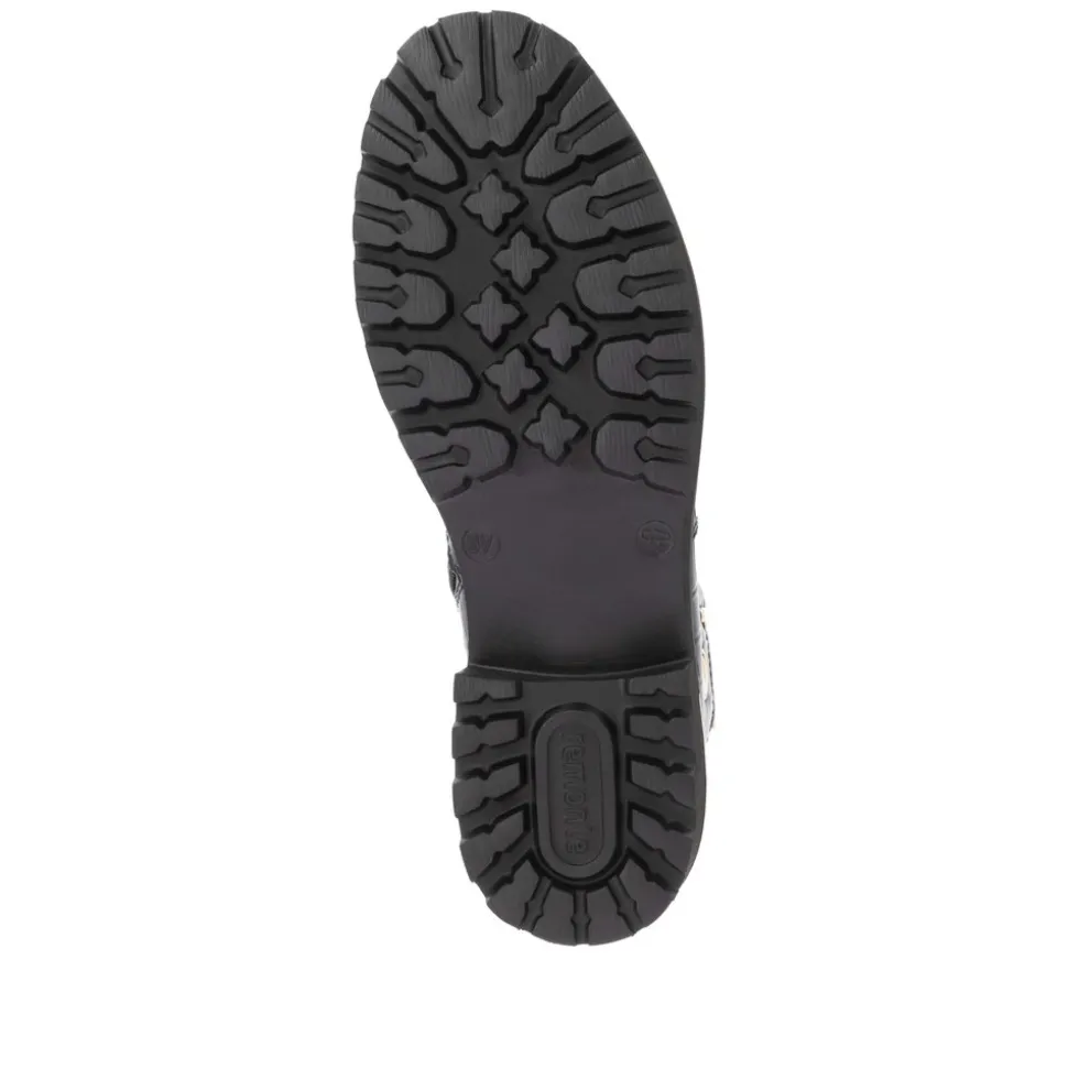 Remonte støvle til dame i sort. En super moderne støvle, der kombinerer en stilfuld sort farve med krokodillemønster …