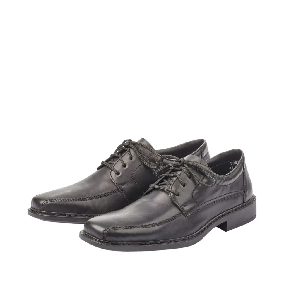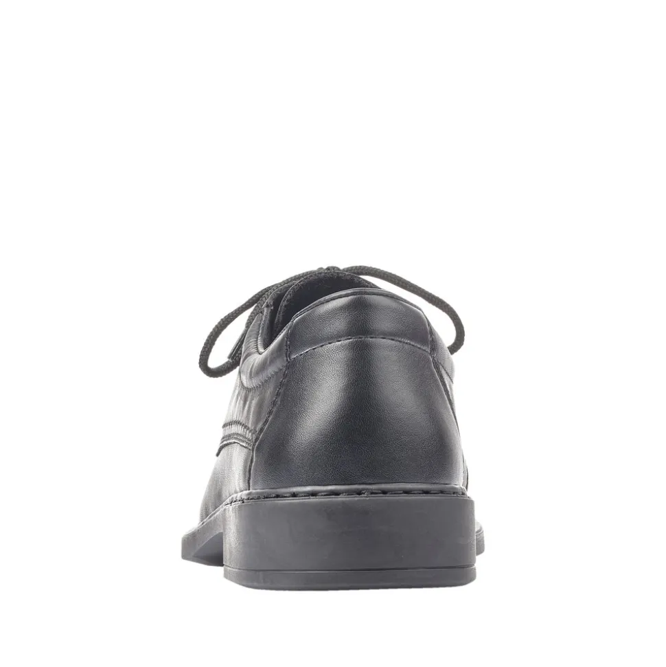 Rieker sko til herre i sort. Maksimal komfort ved hvert skridt! Disse elegante sorte snøresko til herrer fra Rieker, fremstillet i glat læder, kombinerer design med suveræn komfort og funktionalitet. Den klassiske konstruktion gør skoen ekstra fleksibel, robust og sikrer en perfekt pasform. Snøre systemet giver en optimal tilpasning, mens den lette, stødabsorberende sål sikrer langvarig komfort – selv på de længste dage. Med en ekstra blød indersål får du en endnu bedre følelse ved hvert skridt. Skoen er skåret i ekstra bredde (H), hvilket giver masser af plads og frihed til foden. Så skynd dig – disse sko er klar til at følge dig hele dagen!